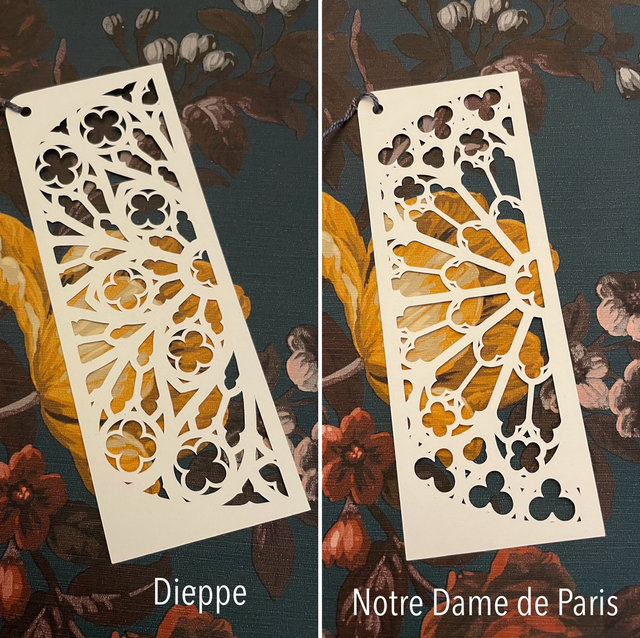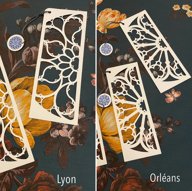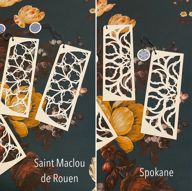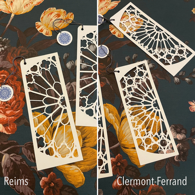 La composition est pensée, dessinée et assemblée à la main. Le dessin s’inspire des roses des édifices gothiques.